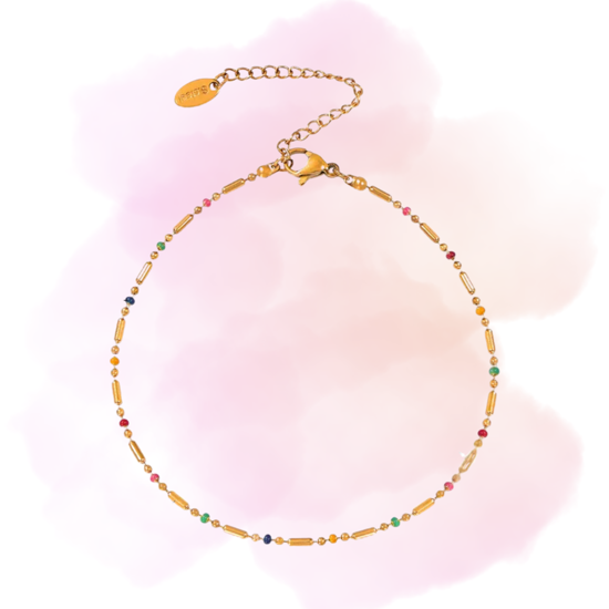 Stainless steel armband met fijne bolletjes met leuke kleurtjes.
