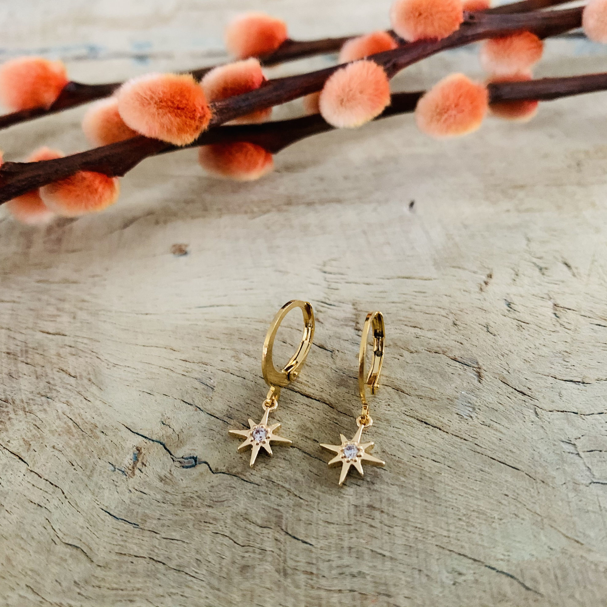 Oorbel met stainless steel hanger, oorhaak in messing, 18K verguld. Kwaliteitsvolle langdurige plating.Lengte: tussen 2,1cm en 2,5cm.