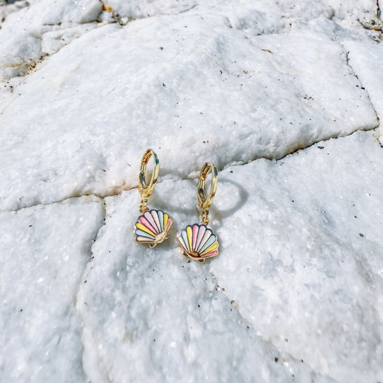 18k vergulde oorhaak met schelpje met pastel kleurtjes