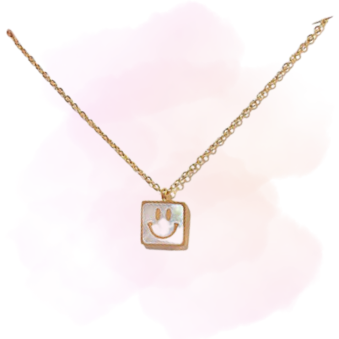 "Smiley" ketting in stainless steel. Stainless steel heeft van nature een zilveren kleur. De goudkleurige ketting is verguld met een echt laagje goud van 14k. Deze ketting is zeer kleurvast maar let toch op met producten zoals parfum. Dit kan het laagje goud aantasten.