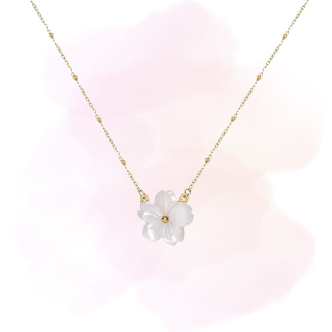 "White flower" ketting in stainless steel. Stainless steel heeft van nature een zilveren kleur. De goudkleurige ketting is verguld met een echt laagje goud van 14k. Deze ketting is zeer kleurvast maar let toch op met producten zoals parfum. Dit kan het laagje goud aantasten.