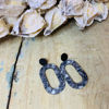 Oorbellen met een lengte van 5,6 cm. Zwarte frosted steker.