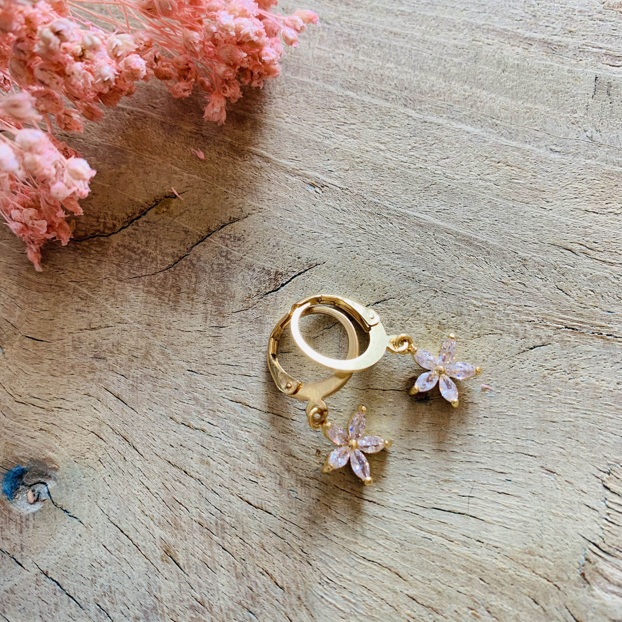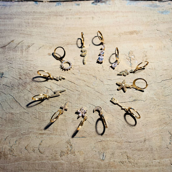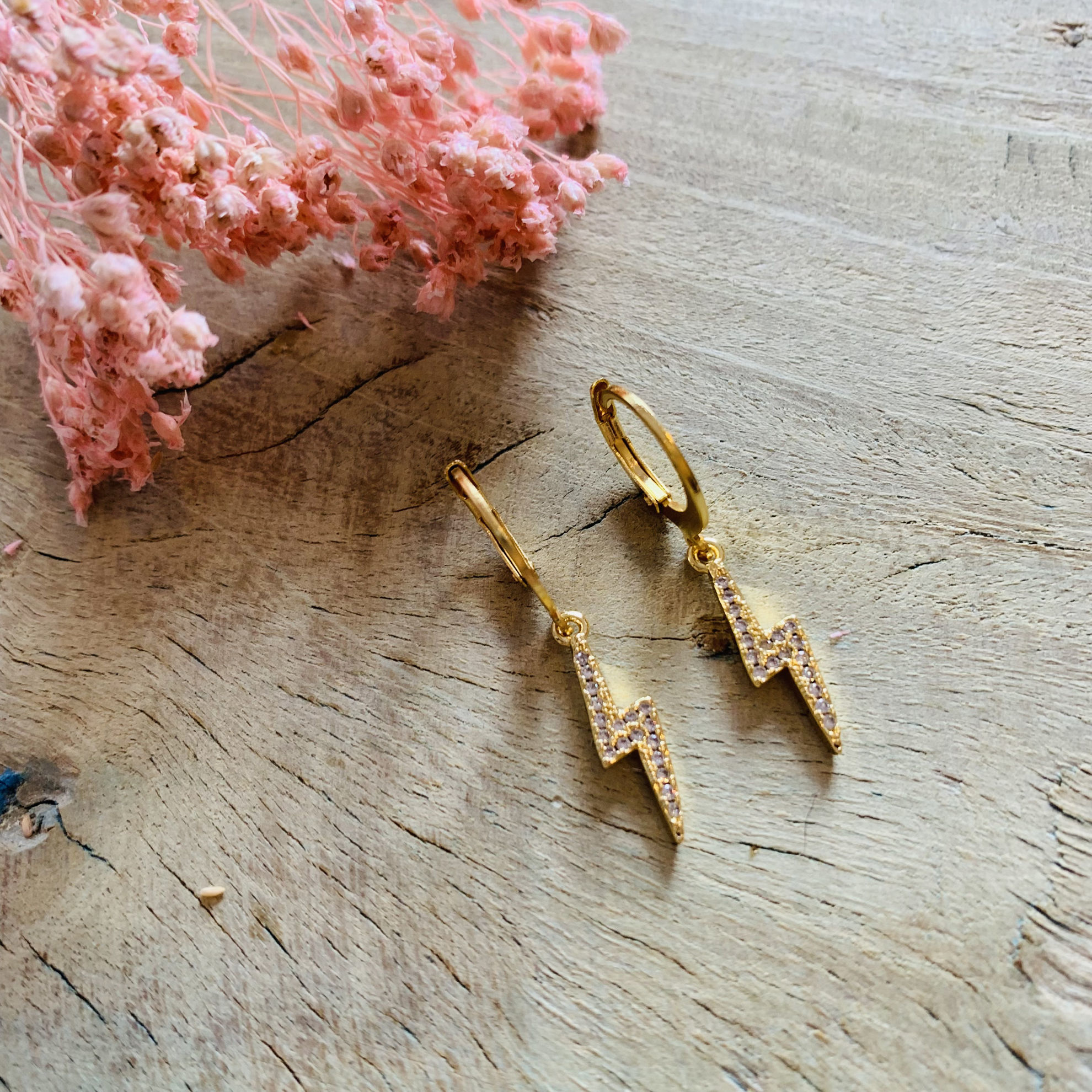 Oorbellen met stainless steel oorhaak met 18K vergulde hanger.